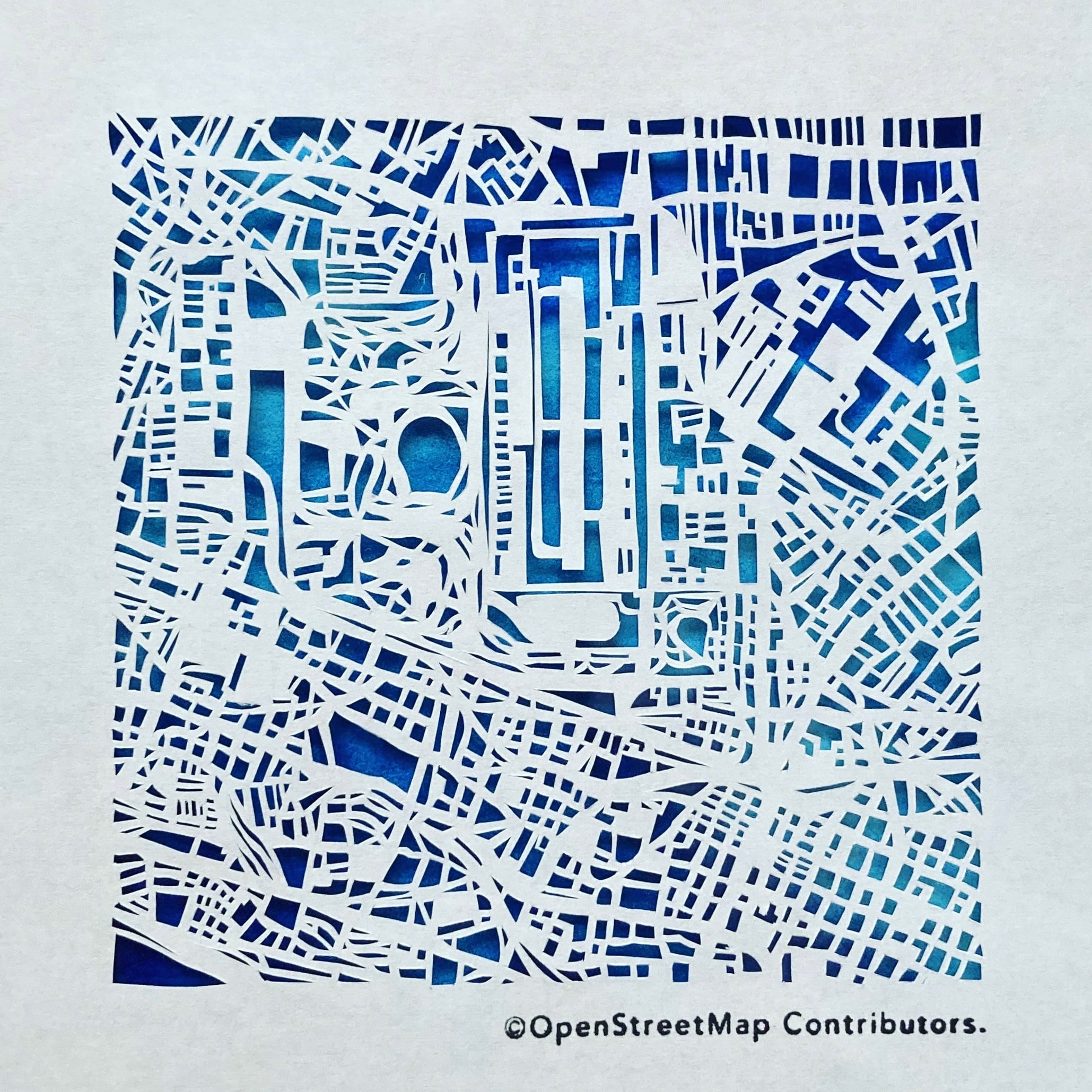 ・切り絵本体に「© OpenStreetMap Contributors.」のクレジットを表記しています(地図データ提供元への正式表記)。